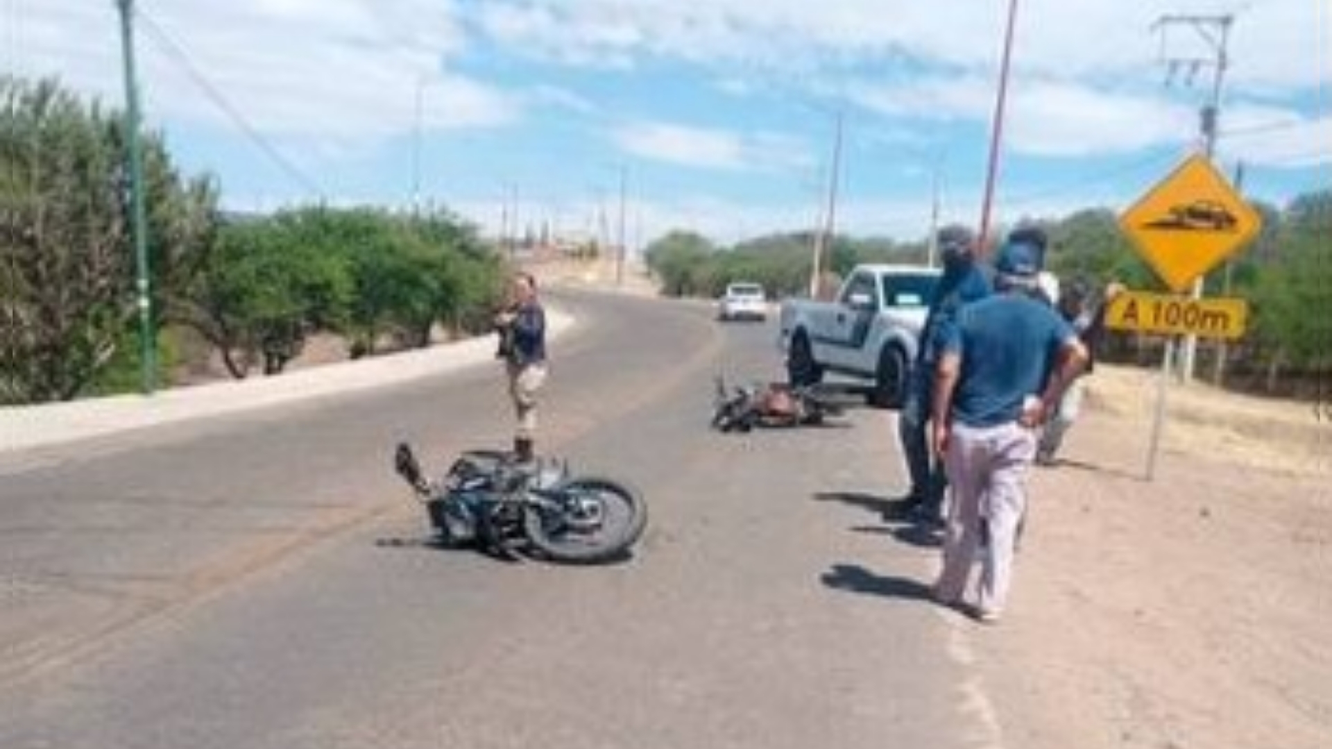 El responsable fue identificado como Luis Fernando M. Z., quien conducía una Italika color azul a la que, repentinamente le estalló un neumático y perdió el control de la unidad, chocando contra otra motocicleta que era guiada por Alejandro S. O., quien resultó con fracturas y fue llevado a un hospital en Parral para que recibiera atención médica.