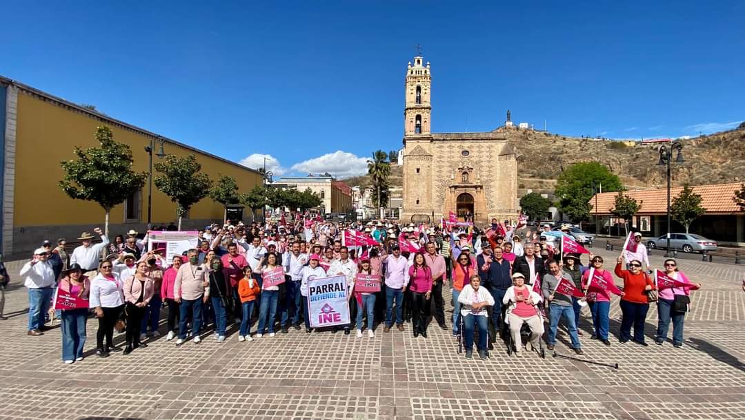 En Parral, diputados, dirigentes partidistas, empresarios y ciudadanos se concentraron en lq Plaza de la Identidad para mostrar su rechazo al llamado Plan B, exigiendo el respeto a la división de poderes y la expresión de confianza hacia la Suprema Corte de Justicia de la Nación para que dé entrada y resuelva a favor los amparos que han presentado, tanto el INE como partidos políticos, ciudadanos y asociaciones civiles.