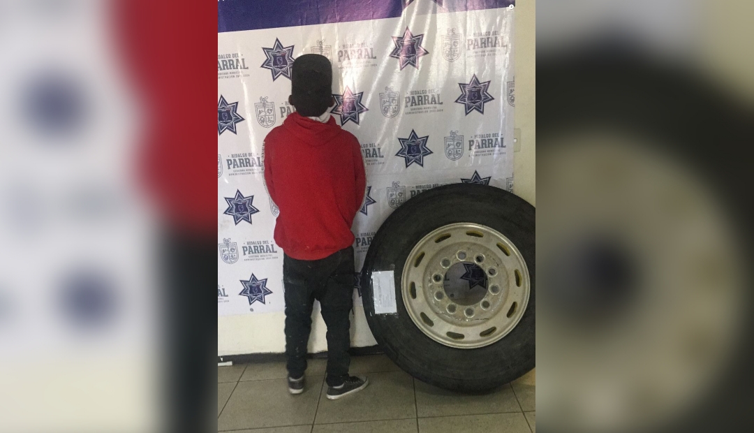 Los hechos se registraron luego de recibirse un reporte en el sistema 911 donde se indicó que una persona desconocida había sido sorprendida robando en el interior de un taller y que llevaba consigo un neumático de gran tamaño, precisamente de un camión con todo y su rin.