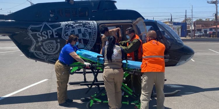Posteriormente, fue abordado en la aeronave por personal médico de la CEPC para ser trasladado al Centro de Convenciones en la ciudad de Chihuahua, donde personal paramédico de la Unidad de Rescate del Gobierno del Estado lo evaluó y lo transportó vía terrestre al Hospital Central para realizar una revisión médica más detallada.