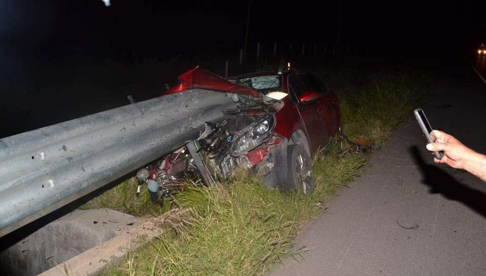 El percance ocurrió a la altura del kilómetro 187 del tramo Chihuahua-Delicias, donde el conductor de un vehículo Peugeot de color guinda, al parecer, se quedó dormido al volante, lo que provocó que la unidad saliera de la cinta asfáltica y se impactara contra la barra de contención, la cual atravesó literalmente el vehículo.