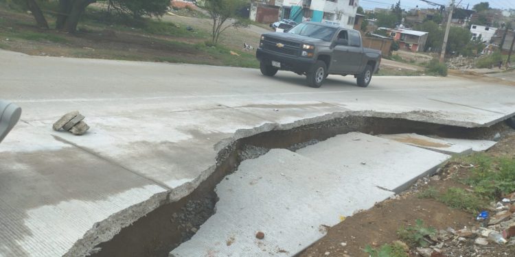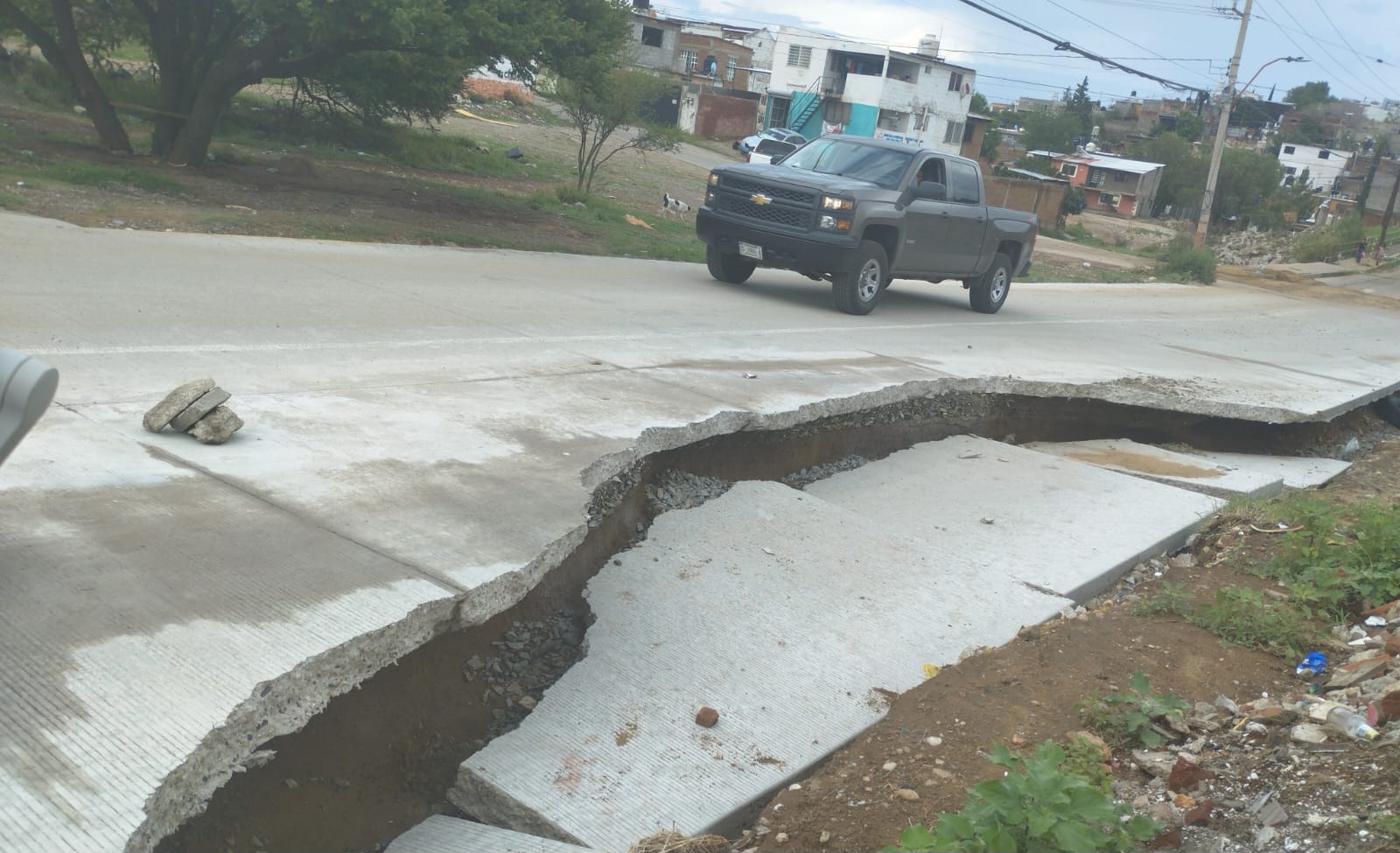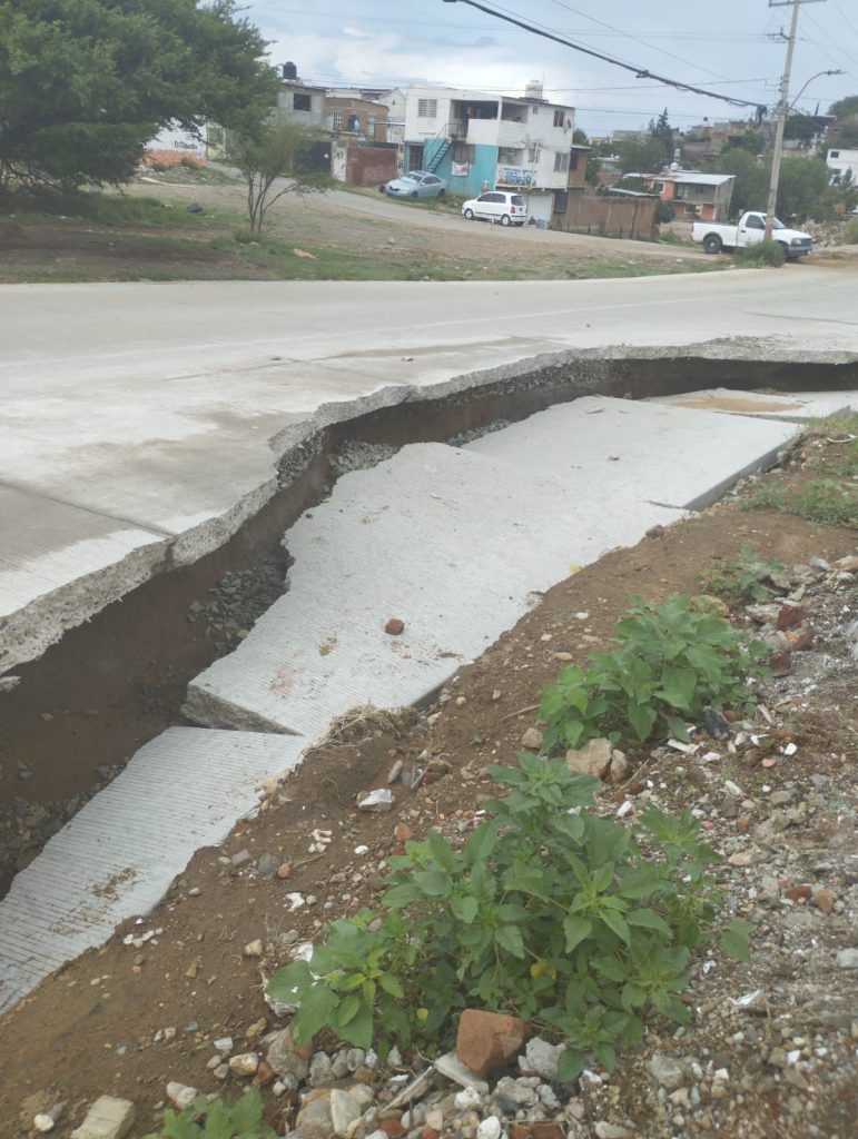Tras las recientes lluvias, especialmente la de ayer lunes, el concreto de la calle García Naranjo de la colonia Héroes de la Revolución, se quebró por completo.