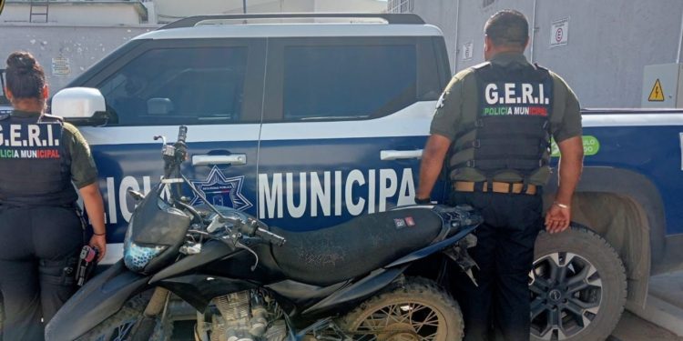Elementos del Grupo Especial de Reacción Inmediata (GERI) de la Dirección de Seguridad Pública Municipal (DSPM) lograron la recuperación de una motocicleta con reporte de robo, gracias a labores de patrullaje y respuesta inmediata a través del sistema de emergencias 911.