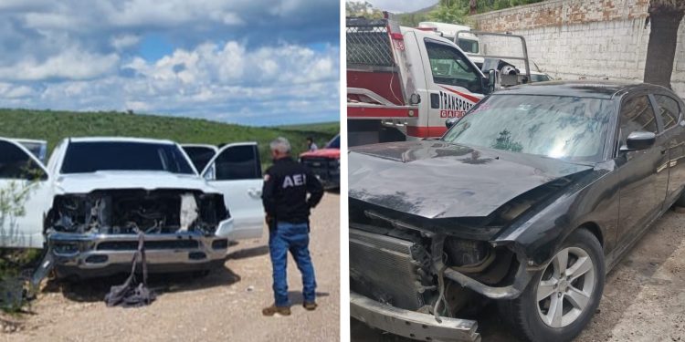 Mientras tanto, en el camino que conduce del Ejido Benito Juárez al rancho La Cieneguilla, en el municipio de Coronado, los Policías Investigadores localizaron una pick up marca Dodge, línea RAM, modelo 2021, de color blanco, reportada como robada el 04 de noviembre de 2021, en el antiguo camino a Villa Matamoros.