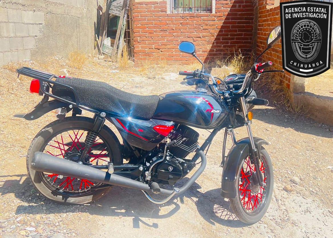 Elementos de la Agencia Estatal de Investigación (AEI) de la Fiscalía de Distrito Zona Sur, recuperaron una motocicleta marca Italika, línea FT150, modelo 2024, color negro y rojo, que contaba con reporte de robo interpuesto el pasado viernes 19 de abril, en la ciudad de Parral.