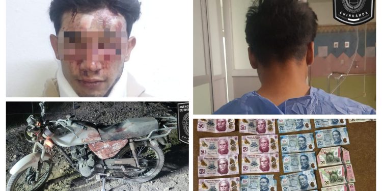 Tras el reporte a los números de emergencia, los agentes ministeriales activaron un operativo que derivó en una persecución que terminó a la altura del kilómetro 03+200 de la carretera que conduce al municipio de Villa López, en donde los tripulantes de la motocicleta se cayeron y fueron detenidos.