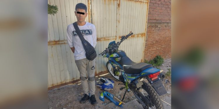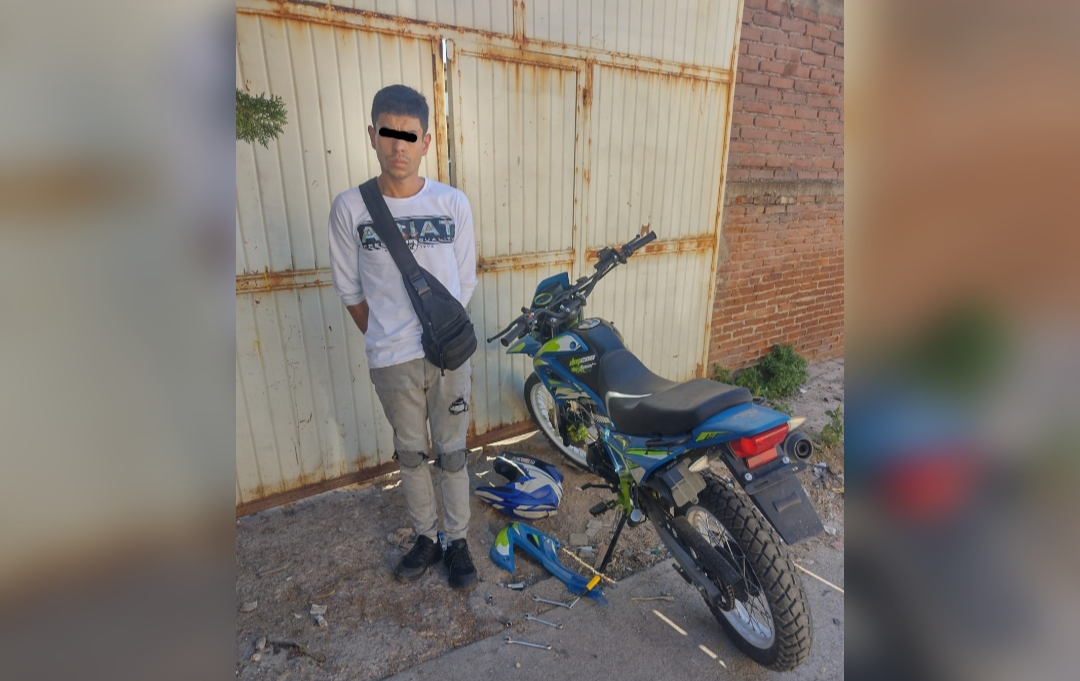 Elementos del Grupo de Atención a Robos de la Dirección de Seguridad Pública Municipal, detuvieron a un joven de 21 años como presunto responsable del robo de una motocicleta en la colonia Fovissste 1 de Mayo, tras haber sido sorprendido desarmando el vehículo.