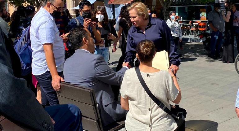 Adriana saludó al delegado de la Secretaría de Bienestar en Chihuahua, quien le preguntó cómo se encontraba y cómo le iba en sus trabajos legislativos.