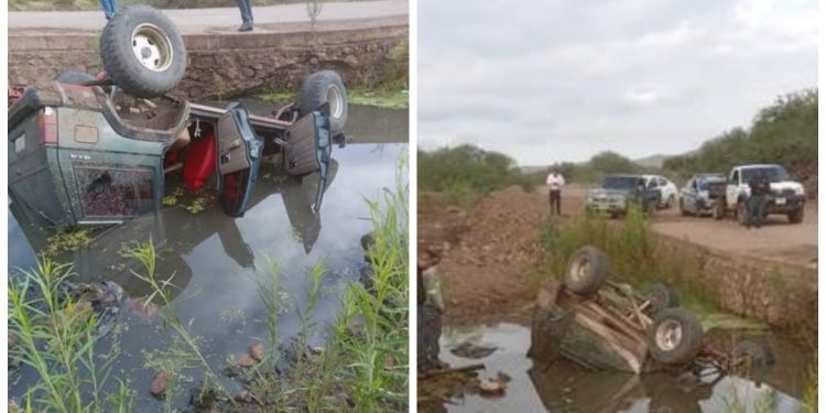 Un Jeep se volcó en el camino de terracería a Las Ánimas y cayó dentro de un charco de agua, en cuyo accidente una mujer resultó lesionada.