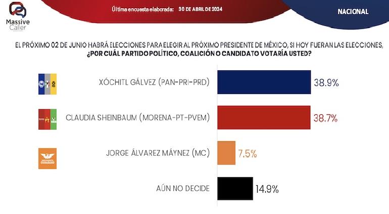 La encuesta, fue publicada este 1 de mayo, a 33 días de las elecciones en México.
