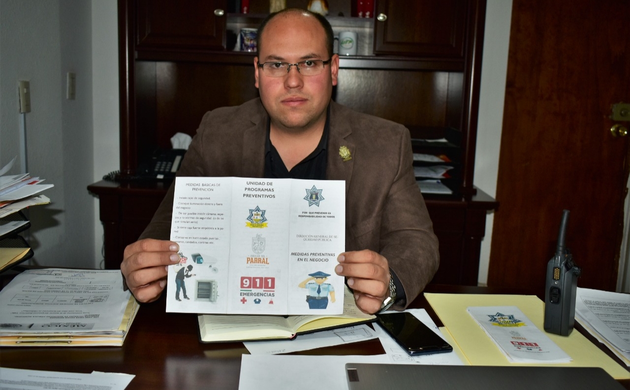 En complemento a las acciones y el trabajo preventivo que se ha intensificado por parte de la Dirección General de Seguridad Pública Municipal para inhibir el delito de robo en áreas comerciales, se suma a dicha estrategia la entrega de trípticos con recomendaciones básicas para empresarios y comerciantes, a fin de prevenir la incidencia delictiva.