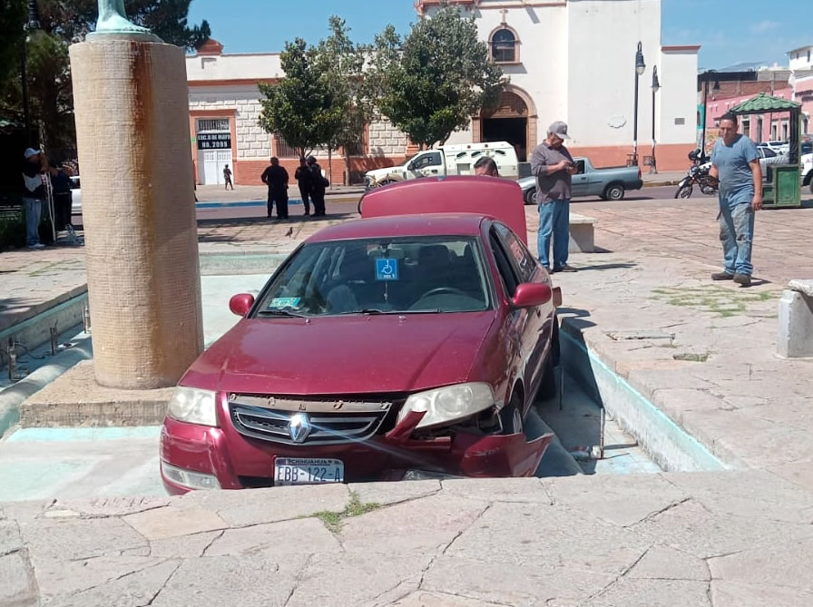 Señor de 85 años mete su vehículo a la fuente de la plaza Guillermo Baca