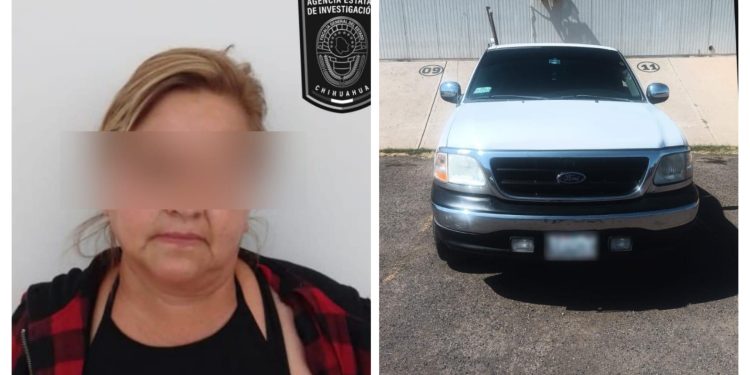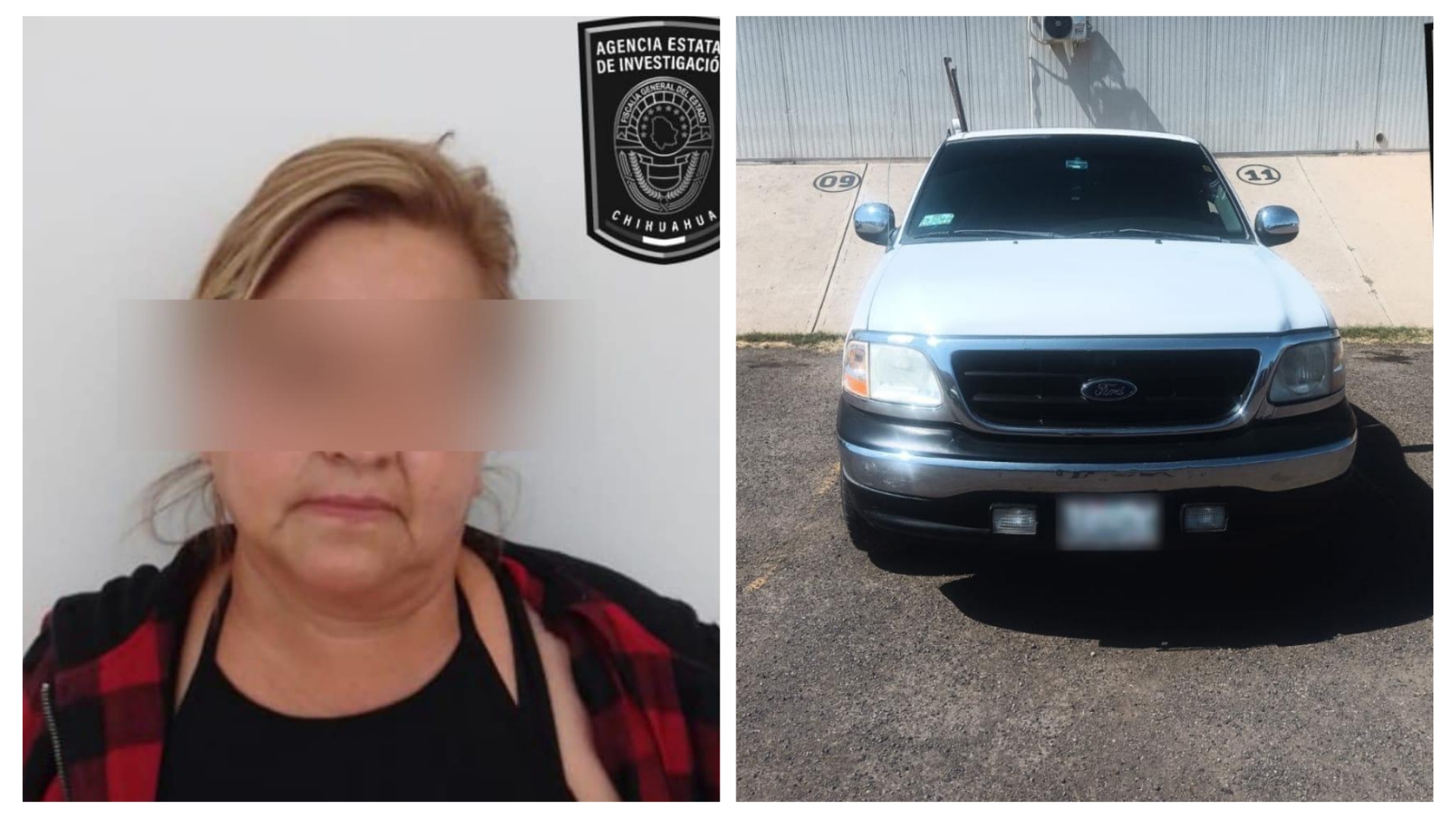 Elementos de la Agencia Estatal de investigación (AEI), detuvieron en el término legal de la flagrancia a una mujer de nombre Lina M. R., de 57 años de edad, quien conducía una pick up marca Ford, línea F150, modelo 2000, de color blanco, con matrículas falsas.