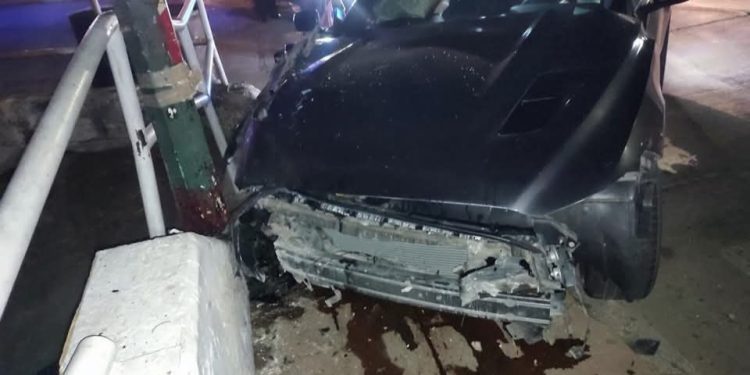 El automóvil sufrió cuantiosos daños materiales y las autoridades determinarán además las afectaciones al patrimonio municipal.