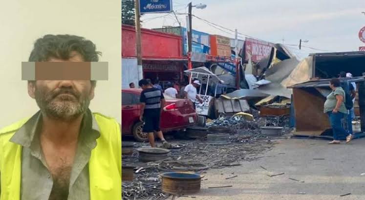 Enseguida, el vehículo Renault, línea Duster al ser desplazado por el tracto camión, impactó contra una camioneta Ford, Explorer, modelo 2013, quedando ambos en el interior de la negociación “Unión de vendedores Benito Juárez”.