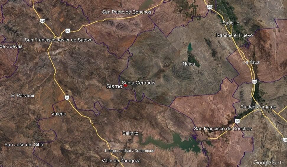 El Servicio Sismológico Nacional (SSN) registró 02:35:55 horas, el movimiento telúrico, con epicentro a 56 km al suroeste de Delicias, Chihuahua, en la zona de Santa Gertrudis.