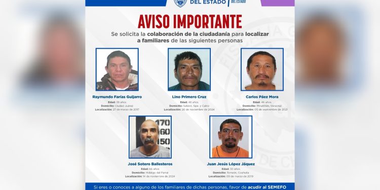 En auxilio a las labores de identificación humana, la Fiscalía de Distrito Zona Sur, a través de la Unidad Especializada en Investigación de Personas No Localizadas y Desaparecidas, y la Dirección de Servicios Periciales y Ciencias Forenses, se solicita el apoyo de la ciudadanía para localizar a los familiares de las siguientes personas: