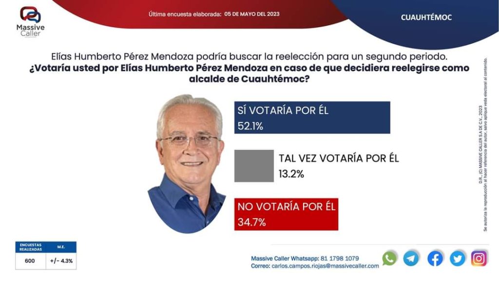 El 52.1% dijo que votaría por reelegir a Beto Pérez Mendoza de Acción Nacional.