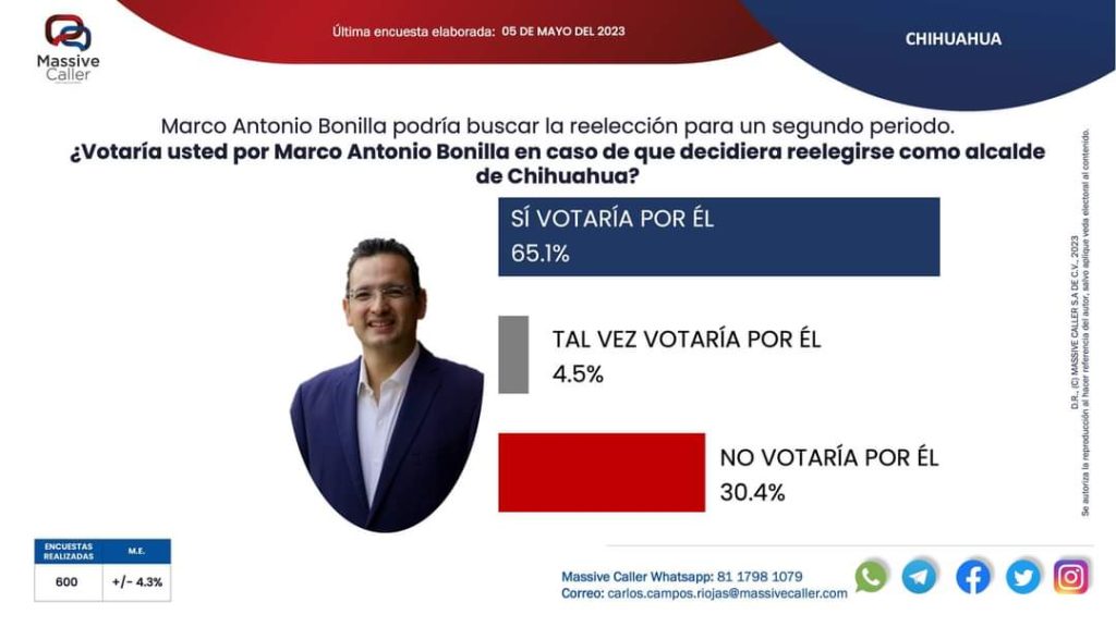 El 65.1% de los encuestados dijo que votaría porque el panista Marco Bonilla siga tres años más como presidente municipal.