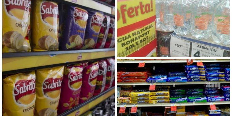 Un garrafón de 20 litros de Bonafont ahora cuesta 41 pesos, frente a los 39 pesos de 2022. Un paquete de galletas Marías de 177 gramos cuesta 17 pesos, dos más que el año pasado; mientras que el paquete más pequeño de papas Sabritas ahora es un peso más caro.