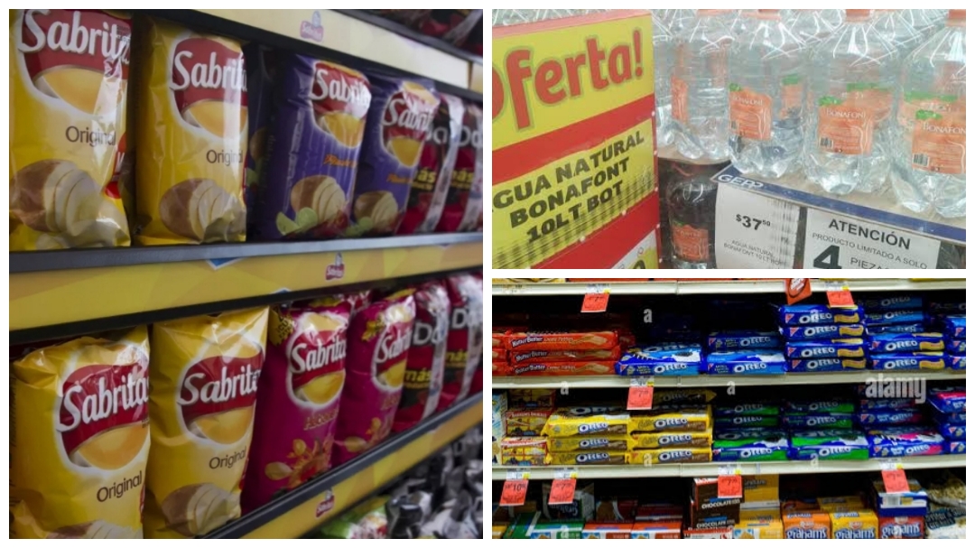 Un garrafón de 20 litros de Bonafont ahora cuesta 41 pesos, frente a los 39 pesos de 2022. Un paquete de galletas Marías de 177 gramos cuesta 17 pesos, dos más que el año pasado; mientras que el paquete más pequeño de papas Sabritas ahora es un peso más caro.