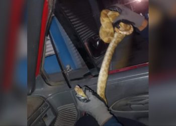 Les sale una víbora de cascabel de puesto de raspados en el Boulevard