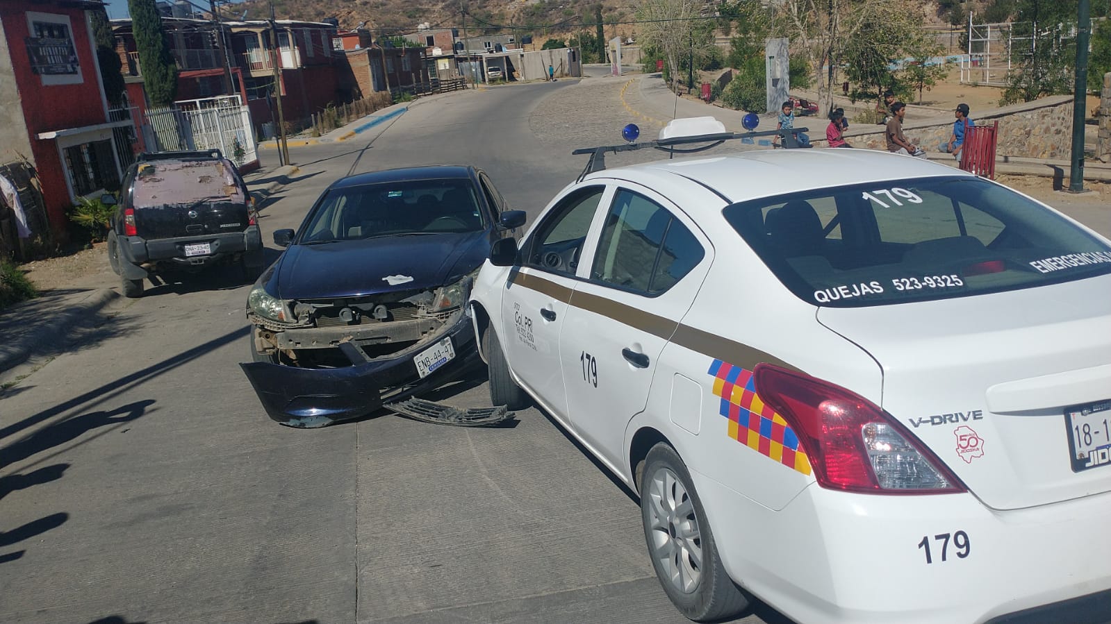 Minutos antes de las 10 de la mañana, al Sistema de Emergencias 911 llegó el reporte que daba cuenta de una colisión entre un Nissan Versa de color blanco habilitado como taxi, con número económico 179 del Sitio Colonia PRI, que conducía Miguel Eugenio H.E., mismo que impactó contra un Honda Accord de color azul que guiaba Jesús Manuel M.G.