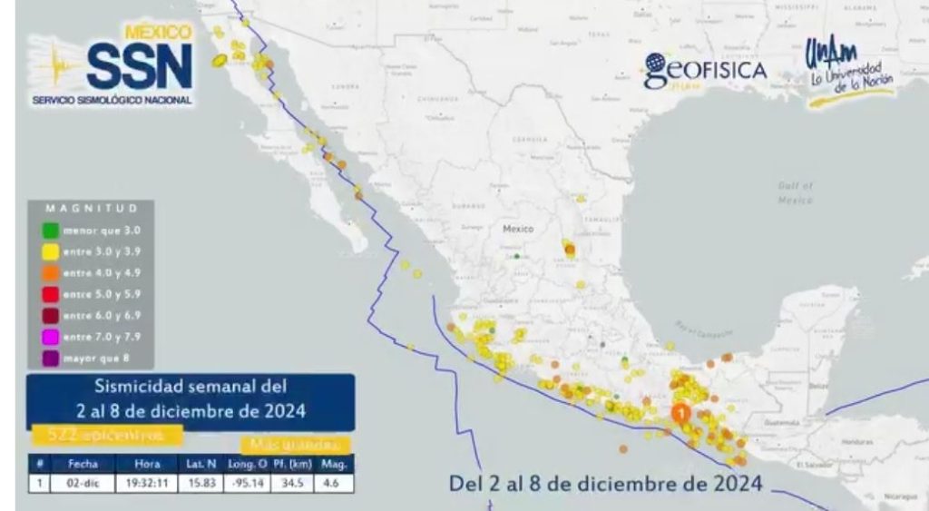Las coordenadas específicas son latitud 26.856° y longitud -105.231°. Además tendría una profundidad de 5.4 kilómetros.