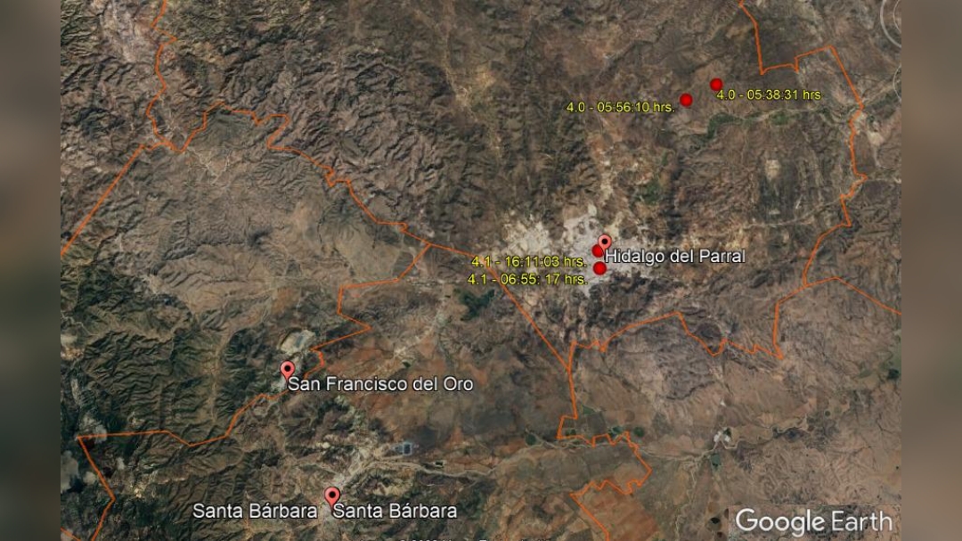 Una cuarta réplica se presentó con una magnitud 4.1 a 2 km al suroeste de Parral, alrededor de las 06:55:17, con una Latitud: 26.92° Longitud: -105.67 y una profundidad Profundidad de 3 km.