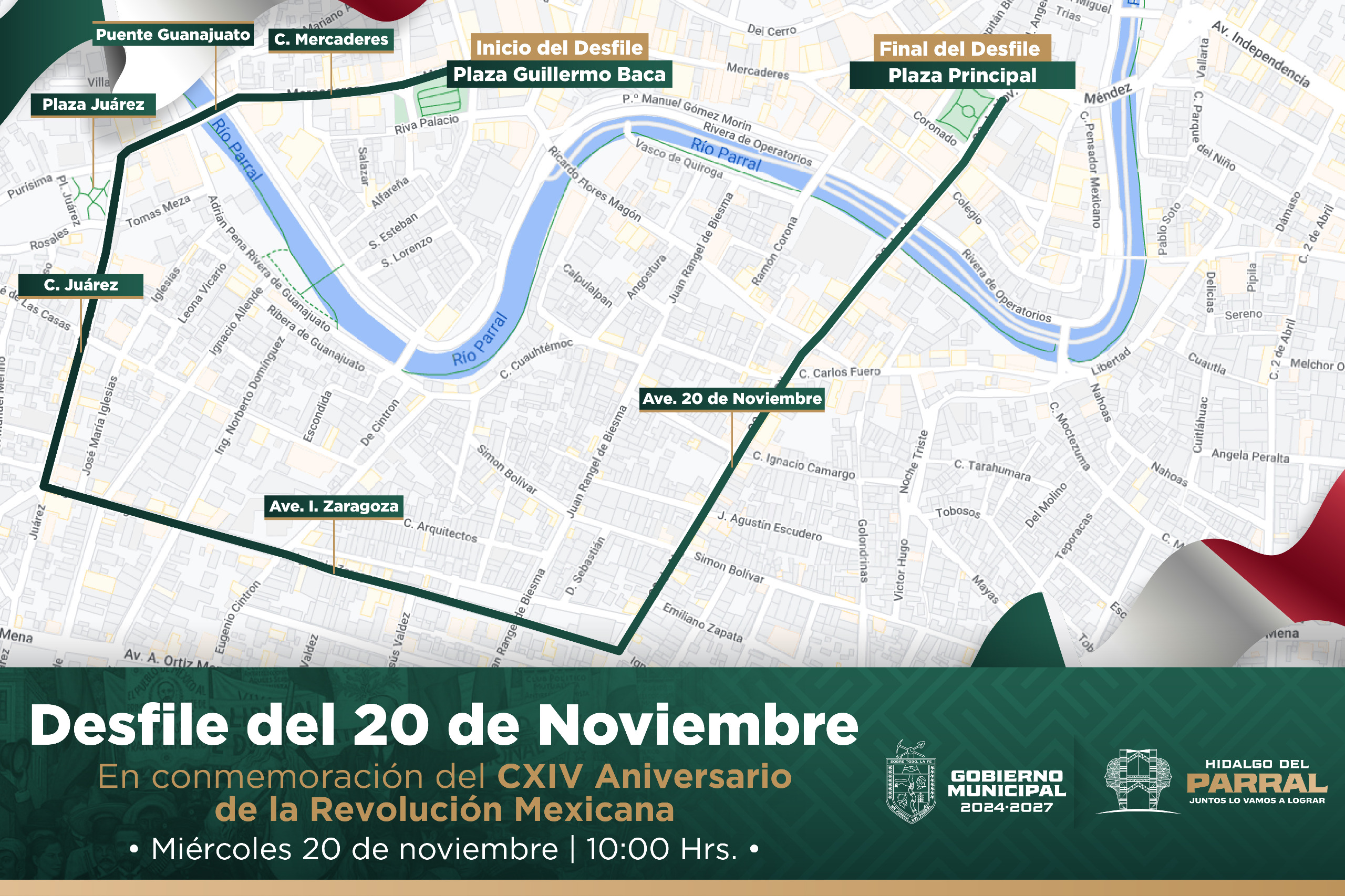 La titular de Acción Cívico Social, Yahaira Jurado, informó que la ceremonia oficial iniciará a las 10:00 de la mañana en la Plaza Guillermo Baca y estará encabezado por autoridades del Gobierno de Parral, Centro de Atención Múltiple (CAM) número 5, Nuevos Villistas de Parral, comunidad indígena de San Andrés, Instituto Municipal del Deporte (Inmudepa), un grupo representativo de los Centros Comunitarios del DIF, así como Miss Turismo México, Señorita Adelita y Señorita Revolución 2024.