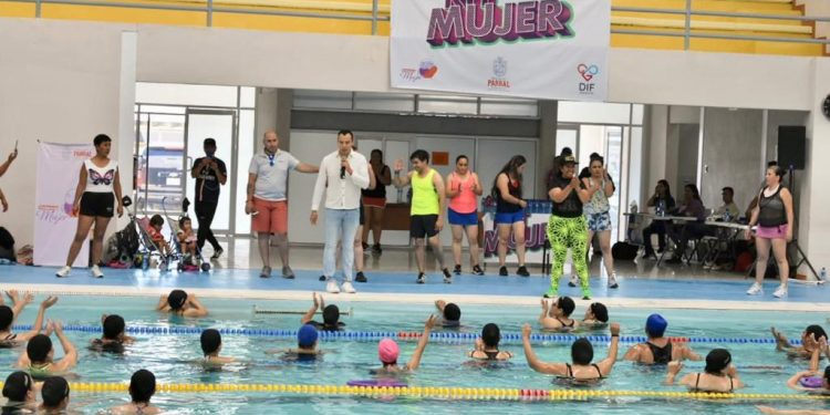 En este evento se dieron cita más de 150 mujeres, las cuales disfrutaron de bailar dentro del agua, contando con siete instructoras de los diferentes Centros Comunitarios, quienes con sus rutinas de baile, motivaron a quienes acudieron a disfrutar de este magno evento.