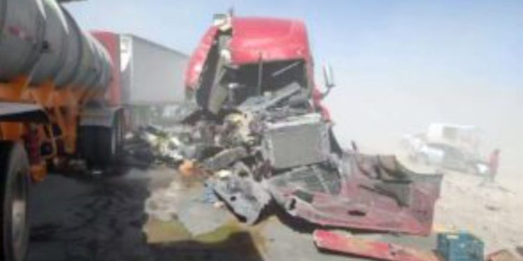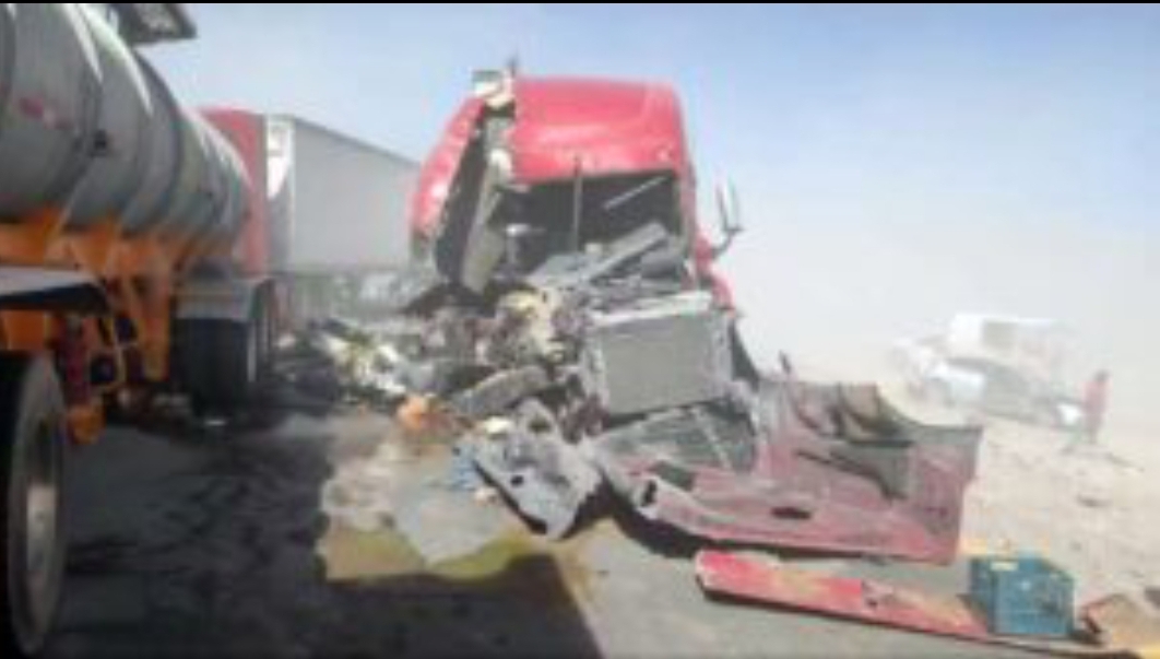 El percance ocurrió debido a las tolvaneras que se generaron por las rachas de viento que se han registrado durante todo el día, lo que provocó la poca visibilidad de los conductores.