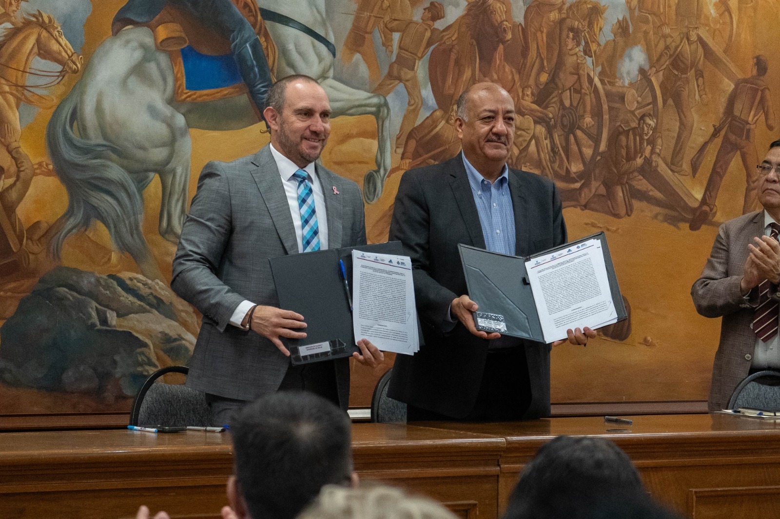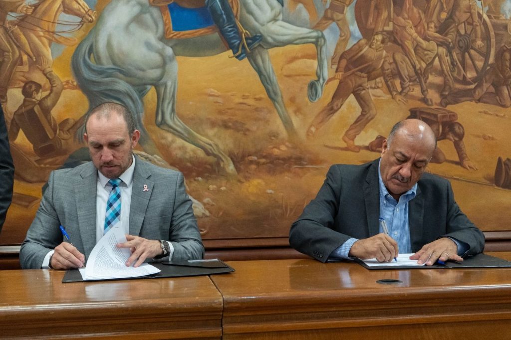 Con el objetivo de coordinar esfuerzos para trabajar en la formación y capacitación de recurso humano en el área médica, los titulares de las secretarías de Salud y de Educación y Deporte, Gilberto Baeza y Hugo Gutiérrez Dávila, respectivamente, firmaron un convenio de colaboración.