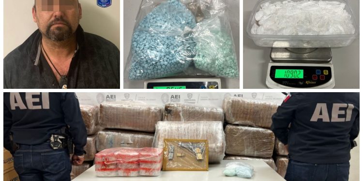 Personal del Grupo de Operaciones Estratégicas, de la Agencia Estatal de Investigación, detuvieron en flagrancia a un sujeto en posesión de gran cantidad de drogas, un arma y un vehículo.