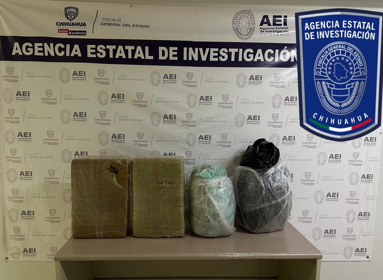 Al interior del vehículo de la marca Chevrolet Aveo modelo 2013, se encontraron dos bultos y una caja que contenía una hierba verde con las características de la marihuana, con un peso estimado de 31.8 kilogramos, por lo que de inmediato se procedió con el aseguramiento.