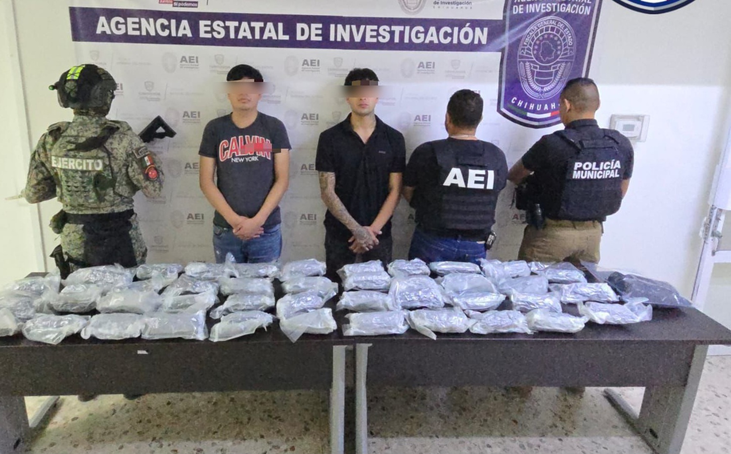En un operativo conjunto implementado por la Unidad Especializada en Investigación de Delitos de Narcomenudeo en coordinación con la Secretaría de la Defensa Nacional y la Unidad de Inteligencia Policial de la Dirección de Seguridad Pública Municipal, aseguraron 21 kilogramos y medio de cristal, y detuvieron a dos masculinos, en el kilómetro 53 de la carretera panamericana Chihuahua – Ahumada.