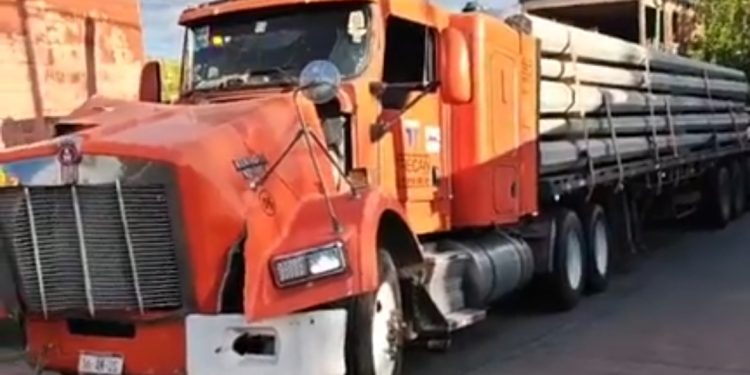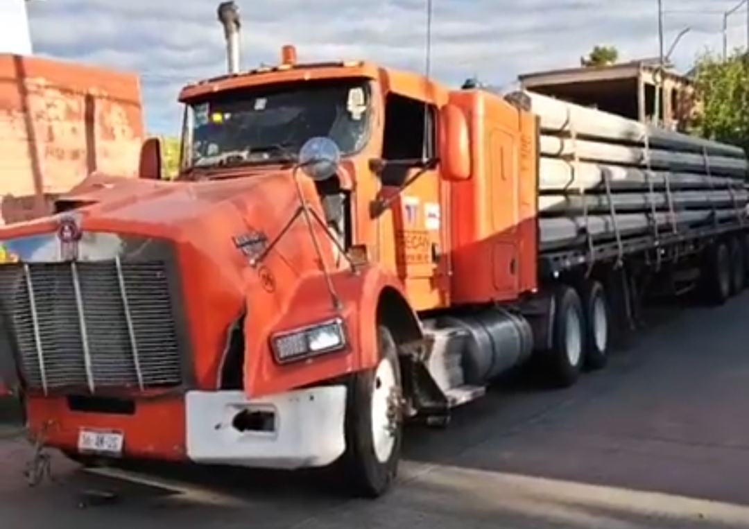 Un tráiler cargado con postes de concreto perteneciente a la Comisión Federal de Electricidad (CFE) perdió los frenos cuando descendía por la calle Circunvalación, a la altura de la colonia Emiliano Zapata, la mañana de este miércoles.