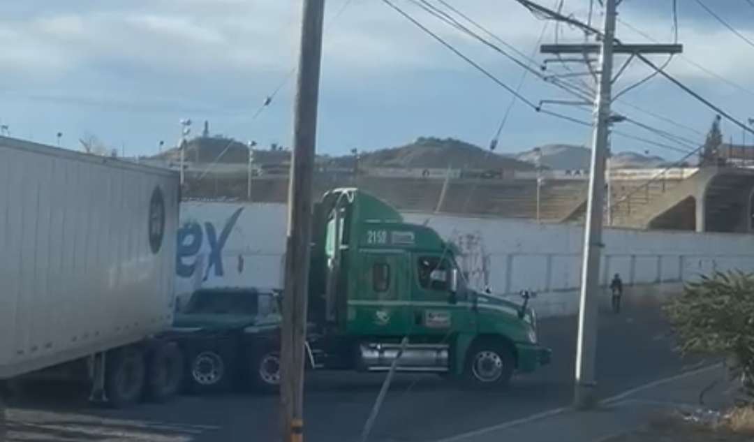 El tráiler descendió por esa calle con rumbo a Sam’s para descargar mercancía, pero una errática maniobra del chofer hizo que derribara un poste de la Comisión Federal de Electricidad, lo que hizo «tronar» un transformador y además, chocó también una pick up Ford color azul de modelo atrasado.