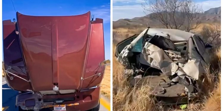 El conductor de un Volkswagen Jetta se salvó de milagro al haber sido impactado por la parte trasera por un trailer en la carretra Parral-Jiménez, y aunque el automóvil quedó destrozado, afortunadamente el conductor del mismo resultó milagrosamente ileso.