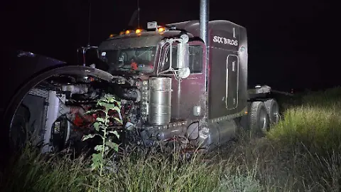 La noche de este sábado un tráiler se salió del camino sobre la carretera Parral–Jiménez, a la altura del kilómetro 18+600, en los accesos a la comunidad de Talamantes, dejando como saldo dos personas lesionadas y cuantiosos daños materiales.