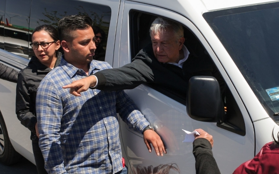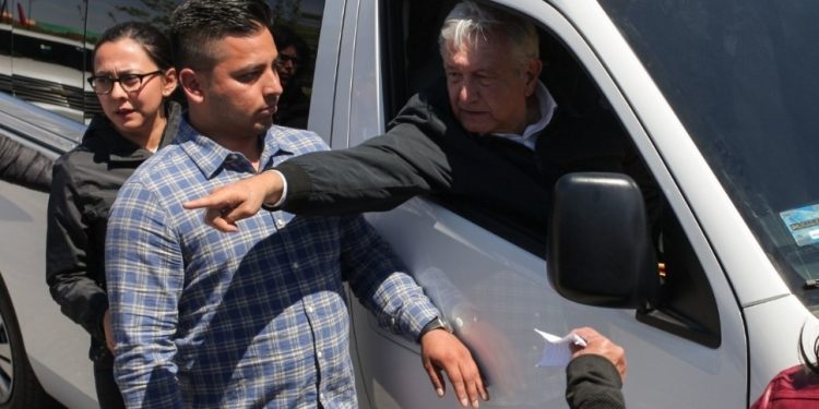 La multitud impidió que el vehículo siguiera avanzando por lo que AMLO quedó de frente con una activista quien se acercó a pedirle que ante la crisis migratoria: “no haga lo de Estados Unidos”.