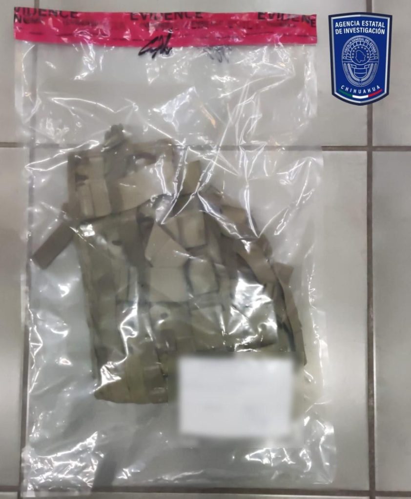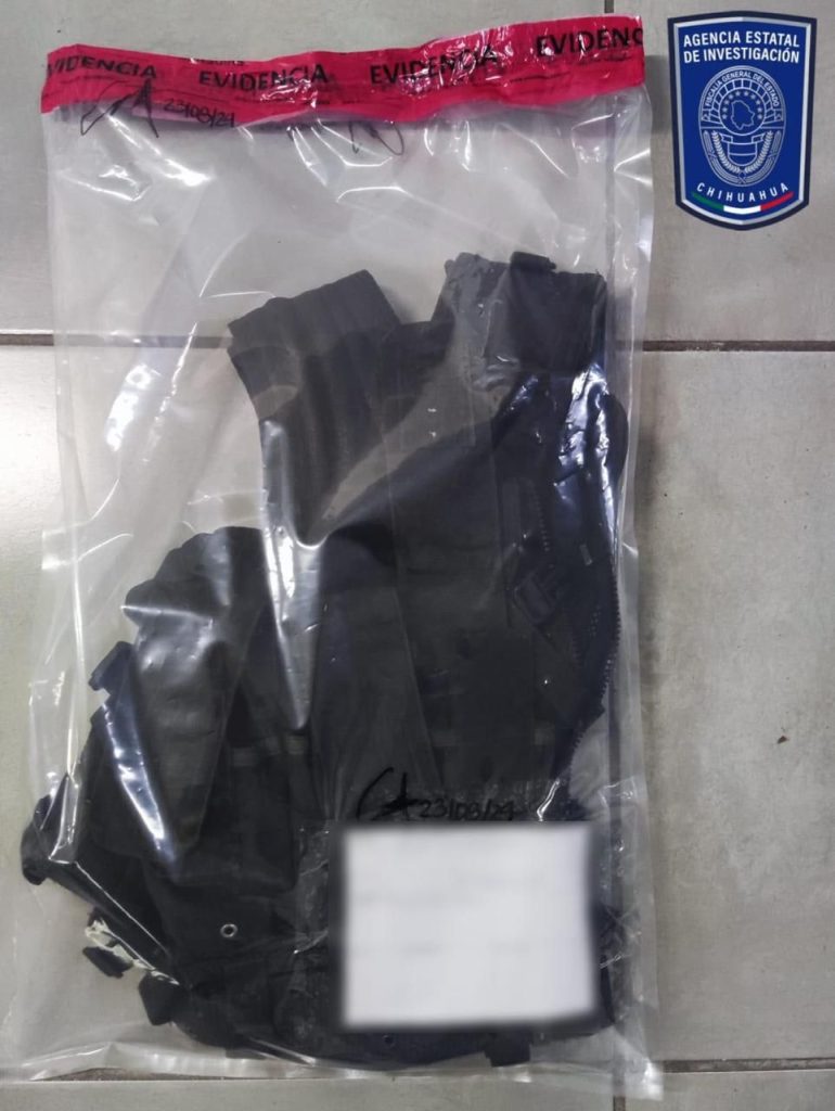 Dos chalecos balísticos color negros, tres chalecos tácticos color negro, un chaleco táctico camuflajeado, un asco balístico color verde y una piernera para pistola.