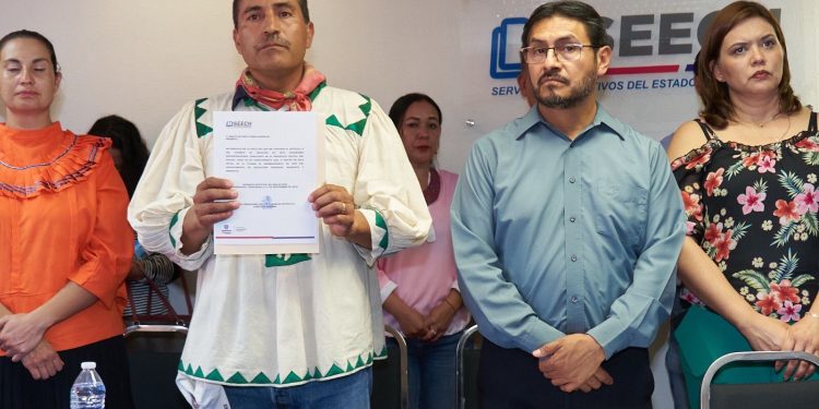 Luego de que esta mañana, en la calle Aldama se instaló la plataforma de un camión de los representantes de Educación Indígena que se pronunciaron respecto a los malos funcionarios que hay en Servicios Educativos del Estado, el director de los mismos, Héctor González Estudillo, tomó protesta a Marco Antonio Parra González como jefe del Departamento de Educación Indígena Migrante y Menonita.