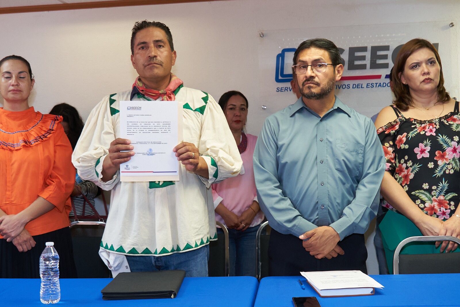 Posteriormente, el director de SEECH, entregó el nombramiento como corresponde conforme al protocolo e hizo la lectura del oficio que a partir de hoy le confiere el cargo.