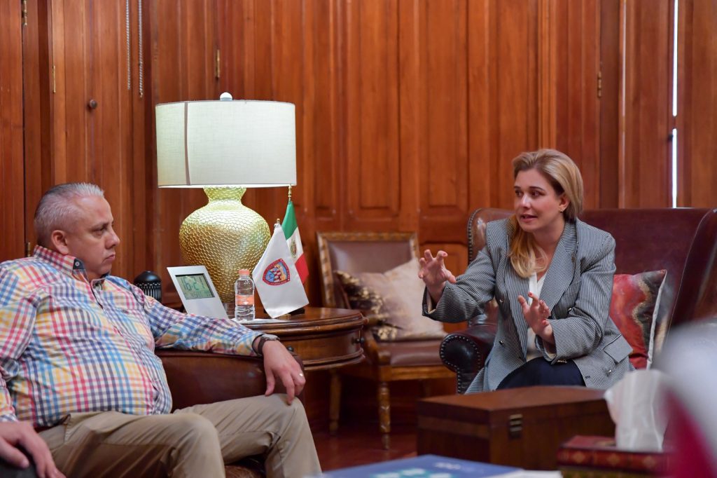 La gobernadora Maru Campos se reunió esta tarde con los líderes de las secciones 8 y 42, del Sindicato Nacional de Trabajadores al Servicio de la Educación (SNTE), Eduardo Zendejas Amparán y Manuel Quiroz Carbajal, respectivamente, con quienes refrendó su compromiso de trabajar en conjunto, en pro de la educación de las niñas, niños y adolescentes de Chihuahua.