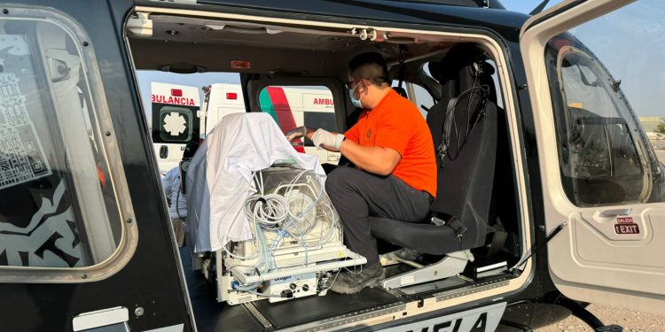 La paciente neonatal fue movilizada desde el Hospital Infantil de Especialidades de la frontera, con destino al Hospital Infantil de la ciudad de Chihuahua, para someterla a una intervención quirúrgica.