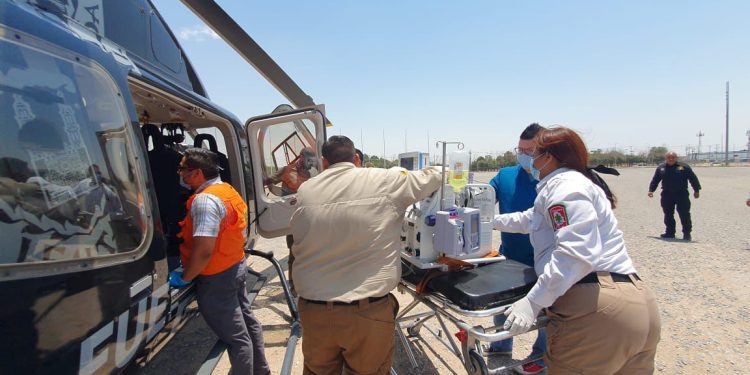 La aero evacuación se realizó desde el ex hipódromo de la ciudad fronteriza y para esto se dispuso del Helicóptero Bell 429 de la SSPE.