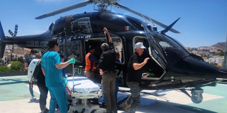 El traslado se llevó a cabo a bordo de la aeronave Bell 429, desde el aeródromo de Guachochi, con el apoyo de pilotos de la SSPE y médicos voluntarios de la CEPC.