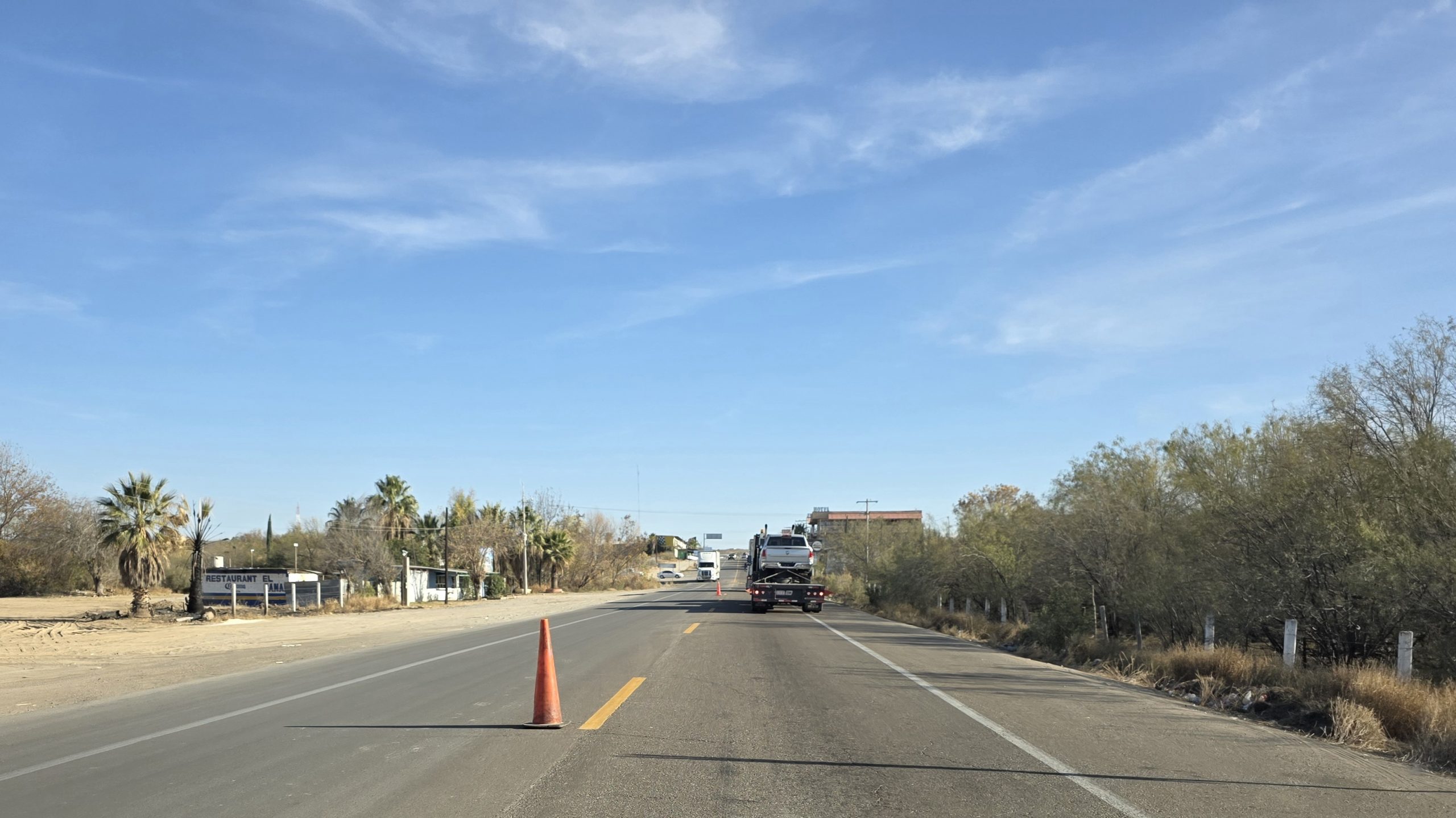 Sin embargo, ninguno de estos puntos contaba con presencia permanente de elementos de seguridad. En Valle de Zaragoza, el llamado punto de inspección se reducía a tres conos naranjas sobre la cinta asfáltica y una lona impresa, sin agentes, sin patrullas y sin control alguno.