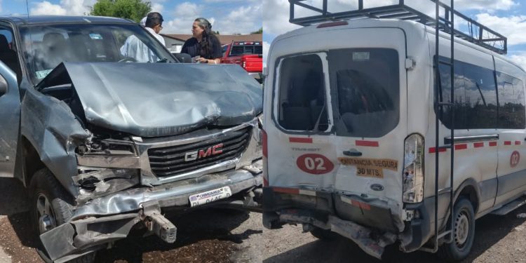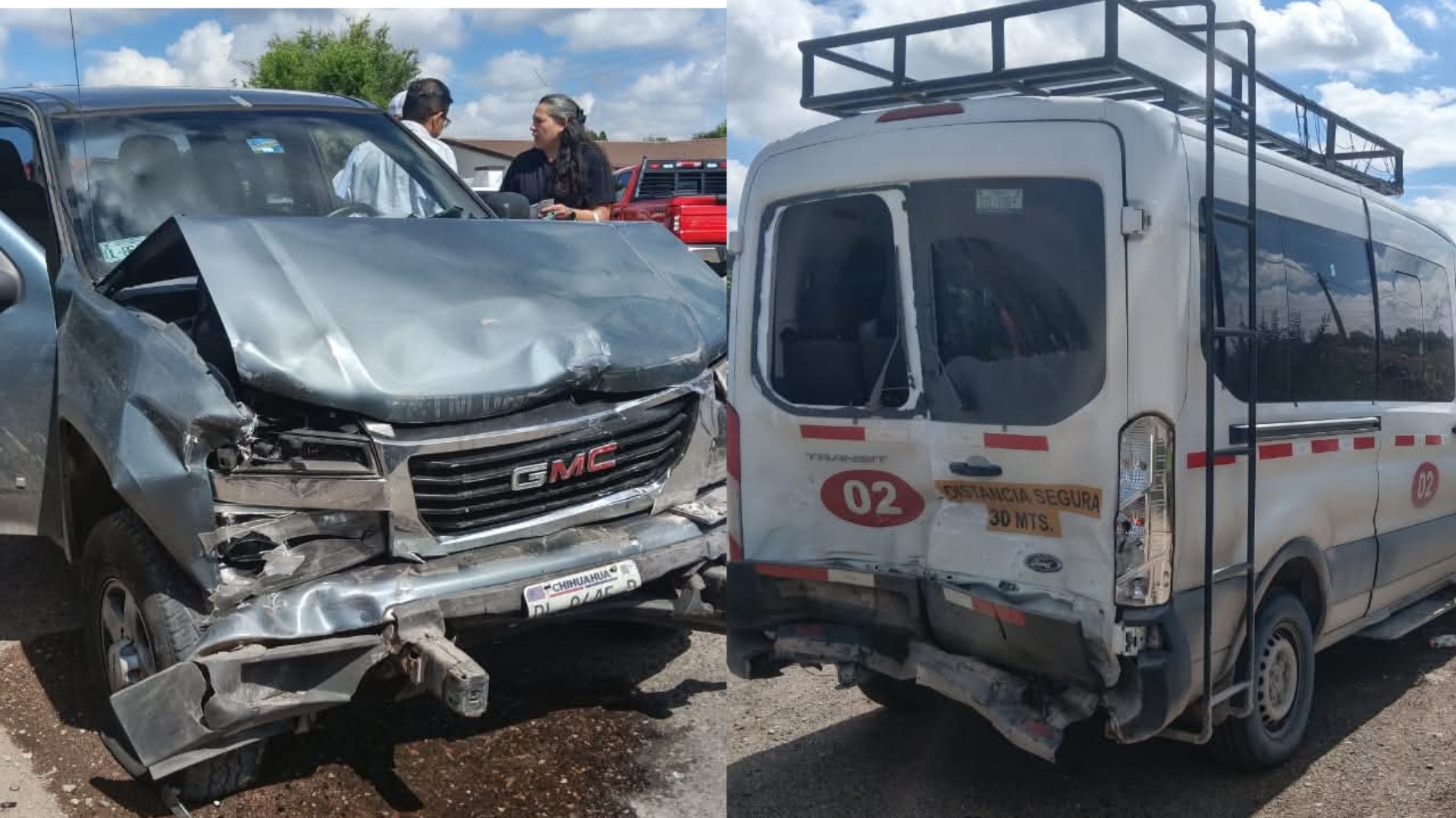En la escena encontraron dos vehículos gravemente dañados: una camioneta GMC Canyon azul marino, modelo aproximado 2012, y una van Ford Transit blanca, presuntamente perteneciente a una empresa minera. La primera había impactado por alcance a la segunda, dejando ambas prácticamente destrozadas en su parte frontal y trasera.